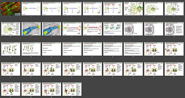 Dieser Foliensatz bietet sich als Einführung in die Neurobiologie an. Wegen seiner relativen Einfachheit ist er auch für die höheren Klassen der Sekundarstufe I geeignet.