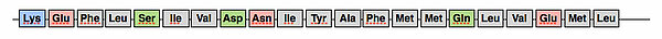 Man sieht hier sehr gut, dass sich die hydrophilen Aminosäuren auf der einen Seite der Helix konzentrieren. Betrachtet man die Helix von oben, sieht man das sogar noch besser: