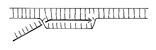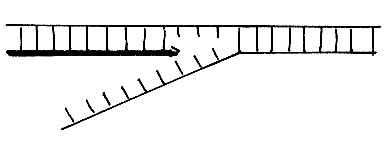 Diese Hypothese geht von relativ stabilen DNA-Doppelsträngen aus. Ein Enzym war dann notwendig, um den Doppelstrang an einer Stelle zu spalten, ohne dass er ganz auseinander fiel (so wie bei der eben besprochenen Einzelstrangverdopplung). Es wurde quasi ein Einzelstrang aus der Doppelhelix freigesetzt. Diese freigesetzte Einzelstrang konnte dann