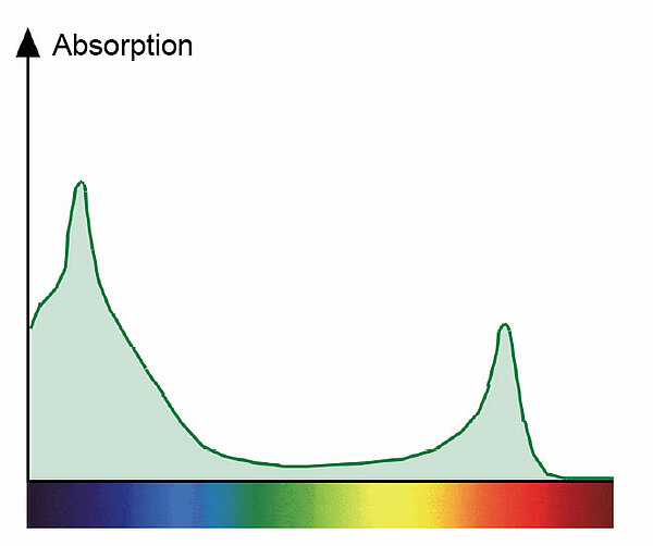 Das Chlorophyll ist für die Lichtreaktion der Fotosynthese verantwortlich. Es absorbiert das Sonnenlicht, vor allem die blauen und roten Anteile, und wandelt die Lichtenergie in chemische Energie um, die letzten Endes zur Spaltung von Wasser-Molekülen genutzt wird.