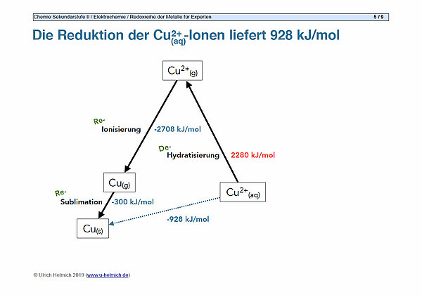 Dieser Foliensatz baut auf dem Foliensatz "Die Redoxreihe der Metalle" auf und ist speziell für die Oberstufe erstellt worden. Begriffe wie Ionisierungsenergie, Sublimationsenergie und Hydrationsenergie bzw. -enthalpie werden zwar nicht direkt vorausgesetzt, sind aber recht nützlich zum Verständnis der Folien.