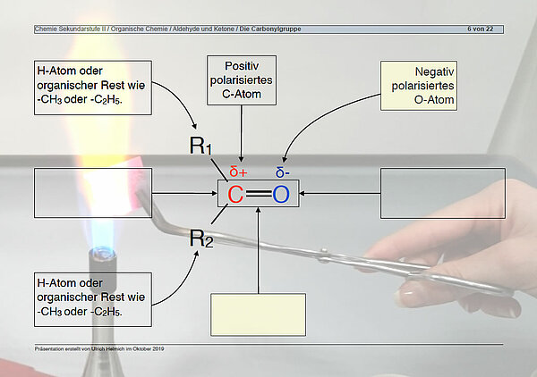 Sie können diesen Foliensatz in der Stufe EF oder auch bereits in der Stufe 9 einsetzen, wenn das Thema "Vom Alkohol zum Aldehyd" behandelt wird. Auf Oxidationszahlen wird in dieser Präsentation nicht eingegangen. Zu diesem Thema gibt es später noch eine eigene Präsentation.