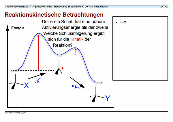 Seit einiger Zeit bin ich wieder angefangen, Präsentationen für den Chemie-Unterricht der Sekundarstufe II zu erstellen. Kolleginnen und Kollegen, die diese PDF-Präsentation "Nucleophile Substitution 4: Der SN1-Mechanismus" gegen eine kleine Kostenbeteiligung von 8 bis 12 Euro von mir erhalten möchten, schreiben mir eine Mail an ulrich.helmich@t-online.de. Den Betrag können Sie mir als Amazon-Gutschein oder besser noch als PayPal-Überweisung zuschicken.