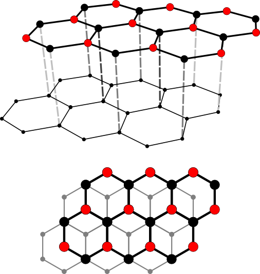 Die Abstände zwischen den einzelnen Schichten des Graphits sind so groß, dass die pz-Orbitale der übereinander liegenden C-Atome nicht mehr überlappen können. Statt dessen werden die Schichten durch schwache van-der-Waals-Kräfte zusammengehalten.