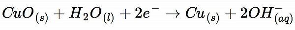 Die Lösung ist hier ebenfalls nicht allzu schwer. Beim Entladen reagiert das Kupferoxid zu Kupfer: