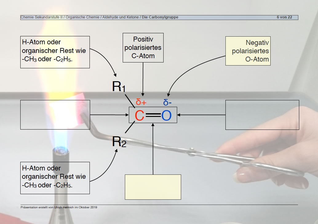 Aufgrund der beiden polaren Bindungen verhält sich die Carbonylgruppe wie ein Dipol, was sich dann auf das ganze Molekül auswirken kann.