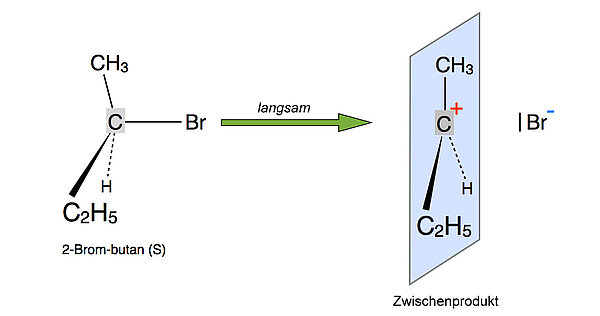 Erläutern Sie, wieso bei der SN1-Iodierung dieses Eduktes ein Racemat entsteht.