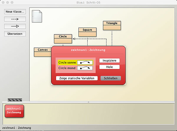 Wenn Sie nun ein Objekt der Klasse Zeichnung erzeugen und dann mit der rechten Maustaste zuerst die Methode makeVisible()